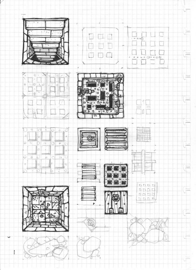 These suggestions sound great (damn, that pun is tempting), but initially I'd like the plans to be almost stand-alone (no pun again) so that if a player prints them out all they need is scissors and maybe glue. I sellotape coins to the cardboard bases and that gives them gust-proof weight, although that does sound rather amateur. If we ever do this as a web page with downloadable PDFs perhaps examples of alternative stands and customisations is a must. - Perhaps extra dotted lines for slots? (Unless of course we sell bases or provide links to a place which sells them which is also an option. But for now I'll focus on cardboard solutions, because I think that's where my strengths lie ... I think) All scenery is possible! Like you said, I've already doodled quite a few things, but I want to develop a consistant style / set of rules with the absolute basics. That 2x2 steps piece was subconsciously inspired by WHQ - only afterwards I suddenly realised the similarity! Again, I'm sure it'll be okay to borrow ideas as long as the look fits in with the rest of the tiles. Not sure I've seen/remember the portcullis in the Deathtrap Dungeon computer game, and that one in Warlock looks very flimsy. However, the Rancour portcullis is more of a heavy door with spikes. :) I think I must also look again at some castle fortification books. Levers! Of course - levers, winches pulleys and chains are essential scenery! Oops, yes, I must build on what has gone before, I've been too lazy to get the box out...(!) :o It's been easier just to sit with the graph pad and work from memory/imagination. Re. your request list and some points in previous posts: Excellent requests and yes, quite a few are done in rough already. I think you're on to something regarding reversible counters open/closed trap doors, chests. I've made a few 3D versions of props and scenery (statues drawn onto square pillars basically to go with the 3D dungeon blocks) but for the majority of this I'd like to keep it 2D, i.e. very easy to assemble - visually accessible. Also I get a bit distracted working on the perfect "nets" for irregular shapes (I lost a whole month thinking about cavern pieces). Also 2D props may translate easily into a computer mapping application (like the Space Hulk one mentioned in another thread ... link to follow). Special stand up swinging wall piece for secret door - excellent idea! Coloured doors will follow shortly. (I'm currently at my lady's abode and my laptop here has failed USB ports and colouring in with track pad is not fun, must get back to some proper tech!) Thanks for the ongoing support. :) |
